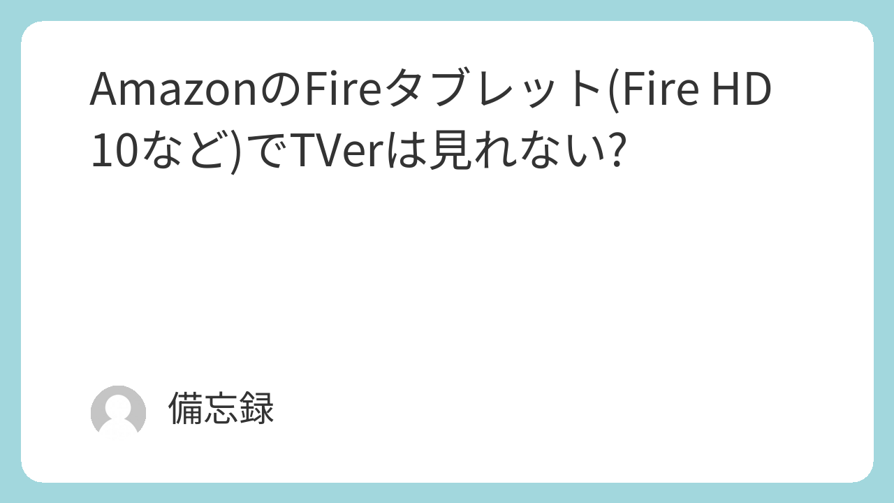 TVerがFire HD 10で見れないのは残念ですね。たくさんの人がこのタブレットを使っていると思うので、早く対応してほしいです。もし他に解決策があれば知りたいです!